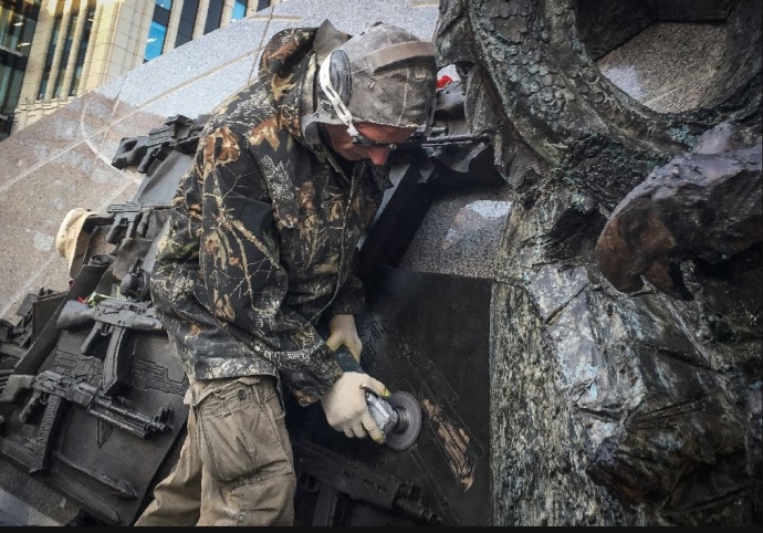 Згідно з повідомленням, фахівці майстерні Салавата Щербакова - автора пам'ятника - прибрали зображення креслення гвинтівки з плити, до понеділка там з'явиться правильне креслення.