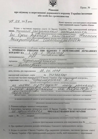 Прикордонна служба України відмовилася прийняти Черноморченко і його рідного брата в зв'язку з тим, що вони нібито не довели свою мету візиту.