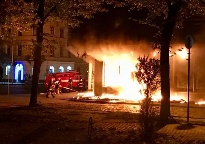 У ніч на 3 жовтня у Львові спалахнула пожежа у будинку на проспекті Чорновола, 2б, в якому розташоване відділення "Сбербанку Росії".