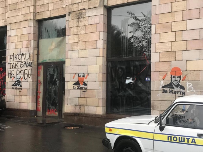 На місці зафарбованих "ікон Революції" з'явилися графіті з Рабіновичем
