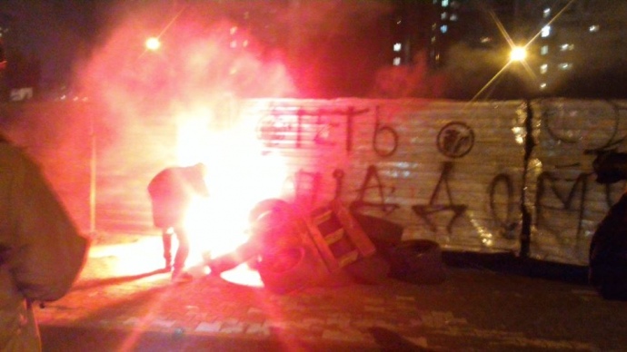 Близько 20:45 між мітингувальниками і правоохоронцями сталися сутички, учасники акції кидали димові шашки, пляшки і розпилювали вогнегасники.