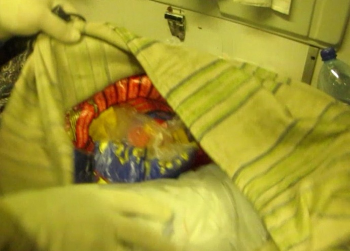 Мішок лежав на третій полиці пасажирського купе, повідомляє Державна прикордонна служба України.