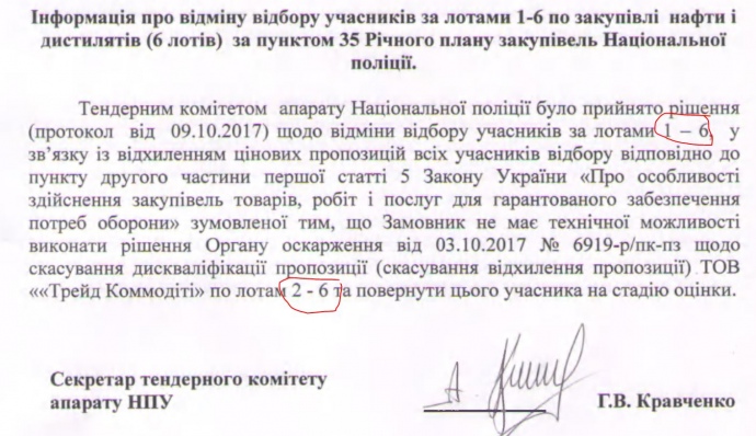 Національна поліція скасувала закупівлю пального у "Трейд Коммодіті" не через махінації компанії і зробила це з порушеннями.