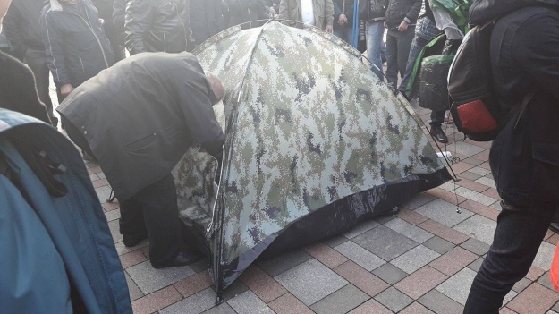 Мітингувальники встановили кілька наметів перед Верховною Радою.