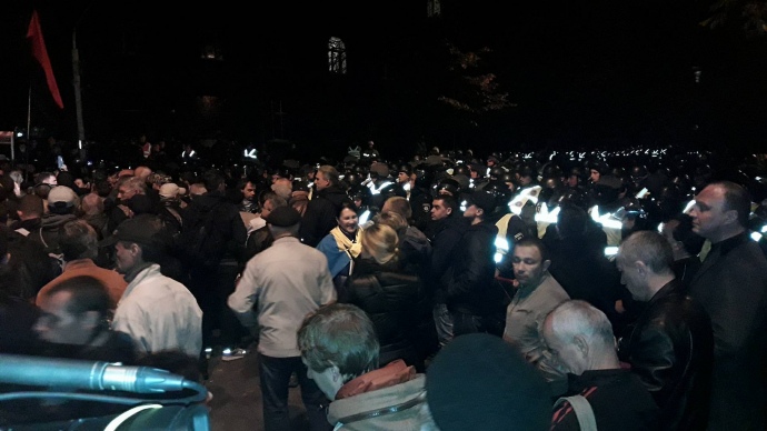Всього на Банковій було півтисячі мітингувальників. Вони кричали "Петро виходь", "Київ вставай", а також "банду геть" та співали гімн України. Після того, як нардепи передали законопроект про антикорупційний суд, активісти пішли назад до Верховної Ради.