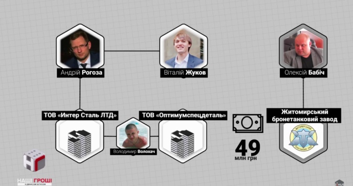 "Интер Сталі" Андрія Рогози Київський бронетанковий без укладання контрактів перерахував 12 мільйонів 3 роки тому, а дружина директора КБТЗ Вадима Шкавра товаришує з дружиною Рогози.
