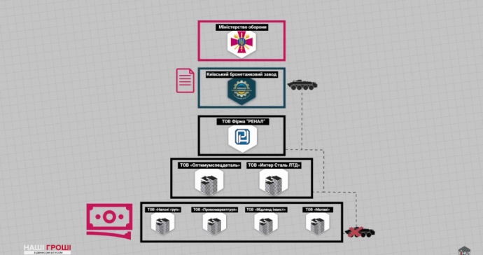 Державний концерн "Укроборонпром", який очолюють наближені до президента менеджери, перераховує десятки мільйонів бюджетних коштів на фіктивні фірми.