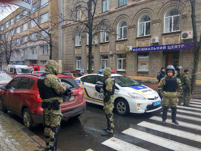 "Будівля повністю оточена і заблокована поліцейськими. Стоїть національна поліція, стоїть якийсь спецпідрозділ не ідентифікований, стоїть реанімації машина. Перекриті і перетягнуті стрічками тротуар і дорога", - сказав Рисенко.