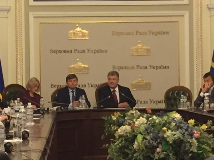"Петро Порошенко на засіданні фракції БПП. Переконував проголосувати за законопроекти по Донбасу", - розповів Горковенко.