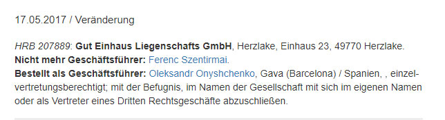 При цьому, у лютому цього року німецьке видання Osnabrücker Zeitung писало, посилаючись на бургомістра селища Герцлаке Ганса Бескена, що нардеп продав частину кінного бізнесу.