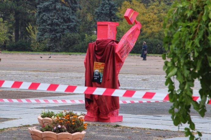 Заодно вони прибрали встановлений раніше "пам'ятник" у вигляді червоної фігури з гумористичними гаслами, повідомляє "Думская".