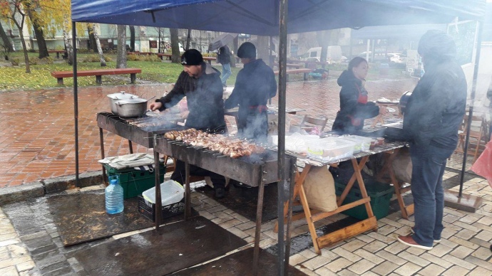 Зазначимо, разом з тим на Михайлівській площі триває ярмарок, який, за словами його учасників, було організовано адміністрацією Шевченківського району, нібито до 80-річчя району. Рішення про проведення ярмаркування було оголошено напередодні ввечері, а щоб зібрати торговців, їх спеціально обдзвонювали.