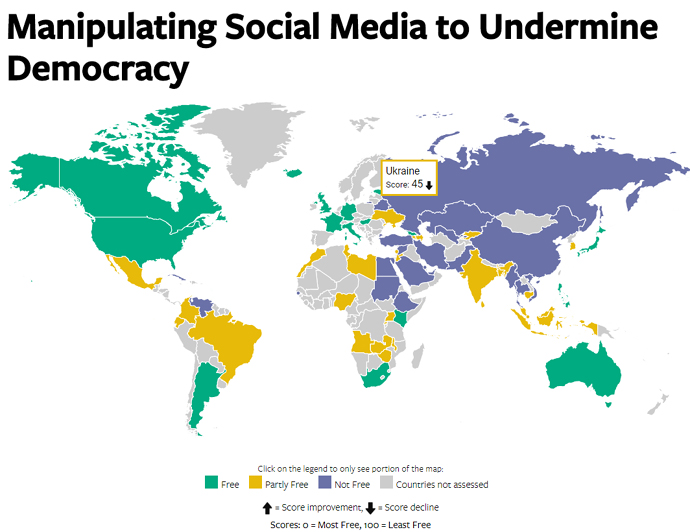 "Тактика маніпулювання та дезінформації зіграла важливу роль у виборах у щонайменше 17 інших країнах за останній рік, перешкодивши можливості громадян вибирати своїх лідерів на основі фактичних новин та справжніх дебатів", - зазначає Freedom House.