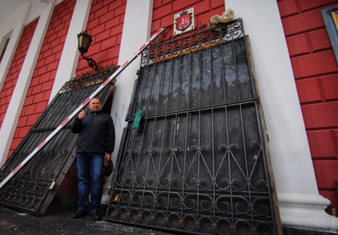 О 13:40 активісти підперли дверима Літнього театру вхід в мерію.