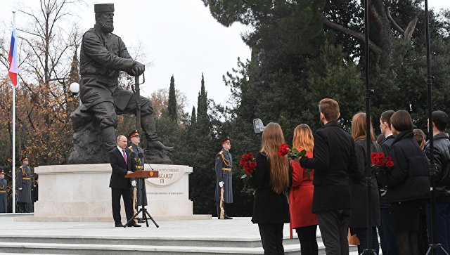 Президент РФ Володимир Путін взяв участь у відкритті пам'ятника російському імператору Олександру III, яке відбулося у парку Лівадійського палацу-музею в Ялті.