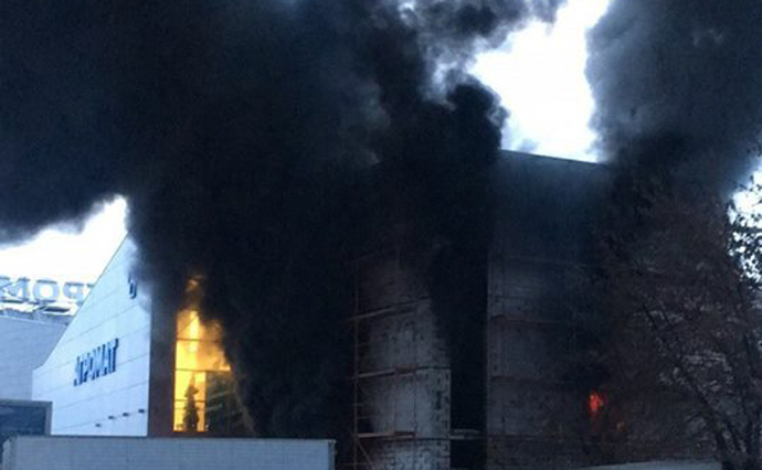 У Києві на вулиці Академіка Булаховського сталася пожежа біля магазину керамічної плитки "Агромат".