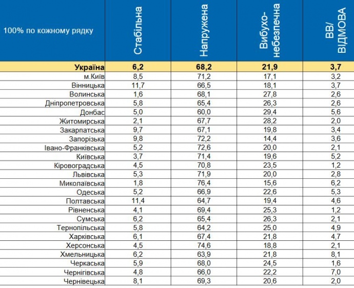Найбільш стабільною видається ситуація жителям Вінниччини та Полтавщини.