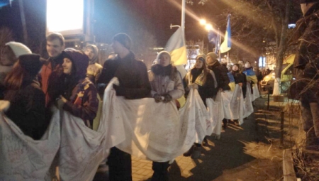 Тим часом кількатисячна колона студентів прийшла до будівлі Адміністрації президента та принесла 100-метрове полотнище з закликами підписати Угоду про асоціацію. Учасники Євроймадану також пікетували будівлю уряду.