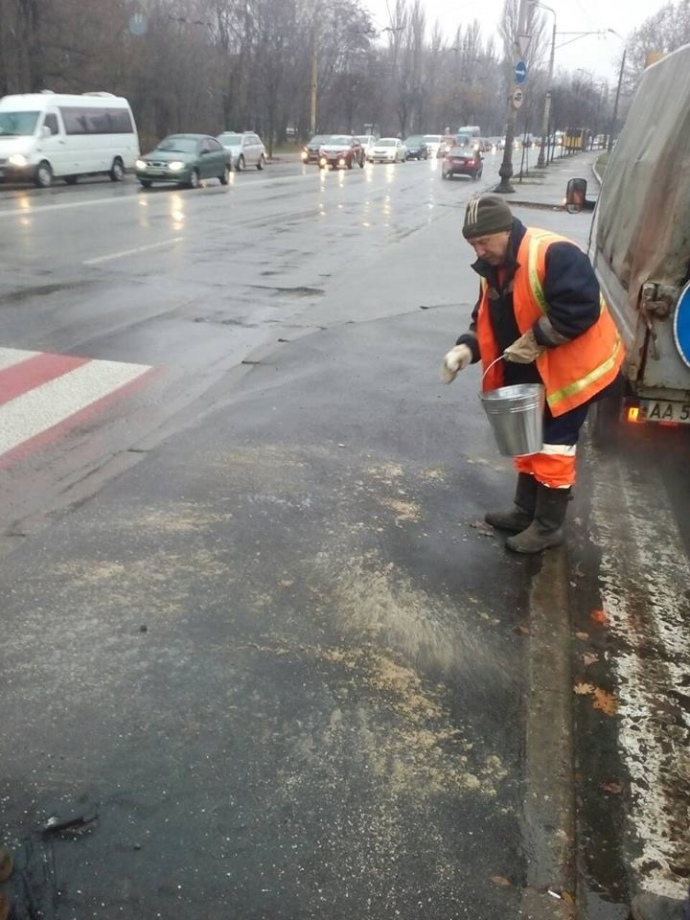 "На проїжджій частині та тротуарах утворилась ожеледиця. З 3 години ночі у столиці 147 одиниць снігоприбиральної техніки оперативно розпочали обробку вулично-дорожній мережі столиці посипальними матеріалами", - йдеться в повідомленні.