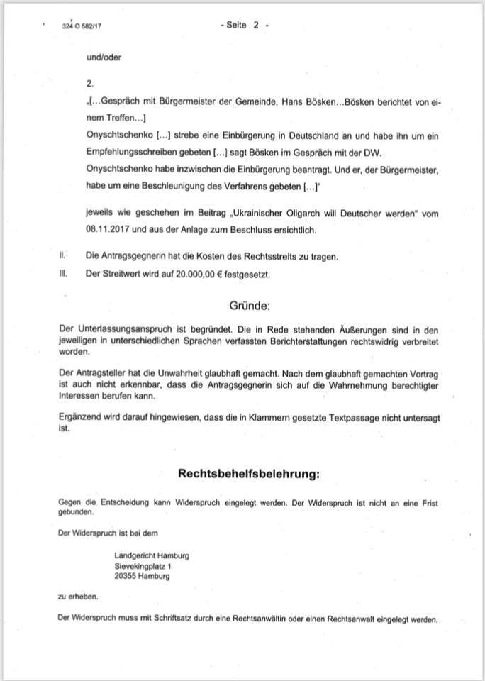 За словами Онищенка, журналіст Deutsche Welle написав статтю, вказавши завідомо неправдиву інформацію про те, що він подав документи на отримання громадянства, а це було не так.