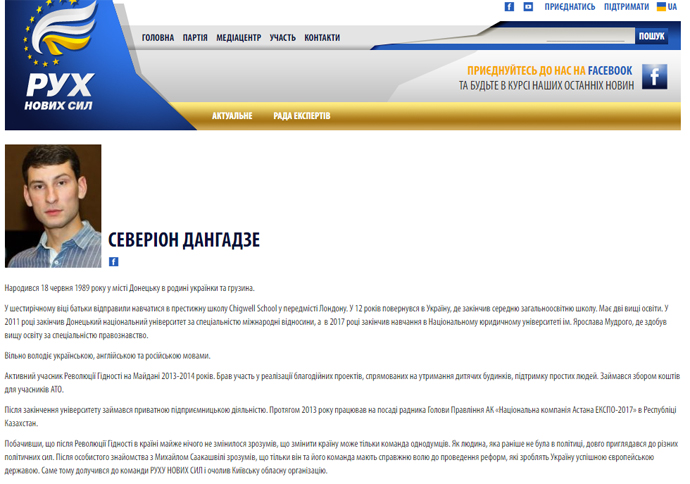 Один із лідерів партії "Рух нових сил" Юрій Дерев'янко розповів, що Дангадзе затримали не в Києві.