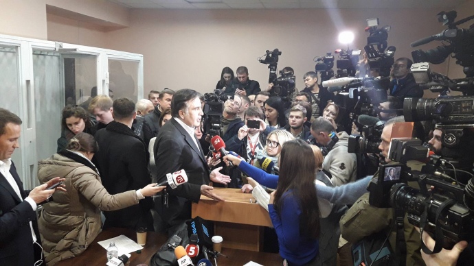 11 грудня у Печерському райсуді розглядали обрання запобіжного заходу затриманому лідерові "Руху нових сил" Міхеілу Саакашвілі.