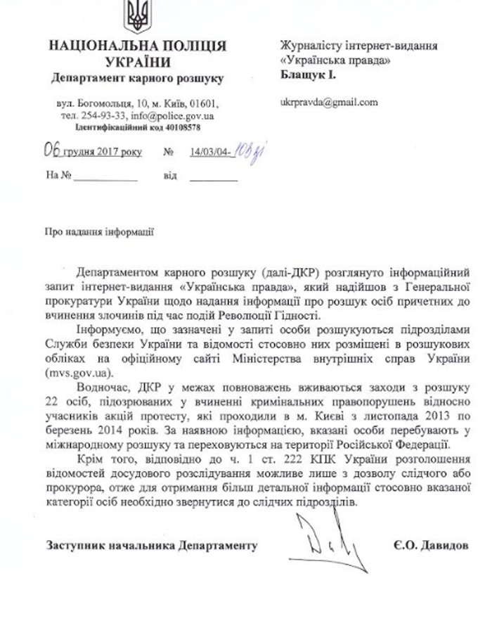 "Українська правда" зверталась з запитом до Генпрокуратури, але отримала відповідь від Нацполіції.