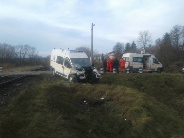 Поблизу Львова дизель-поїзд врізався в автомобіль "швидкої допомоги".