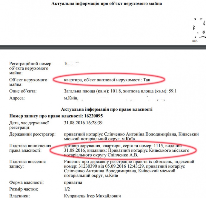 Раніше у вересні 2017 року Купранець також придбав квартиру площею 50,4 квадратних метри за 1 140 912 гривень, однак станом на 3 січня 2018 року у реєстрі нерухомості за Ігорем Купранцем ця квартира не зазначалася.