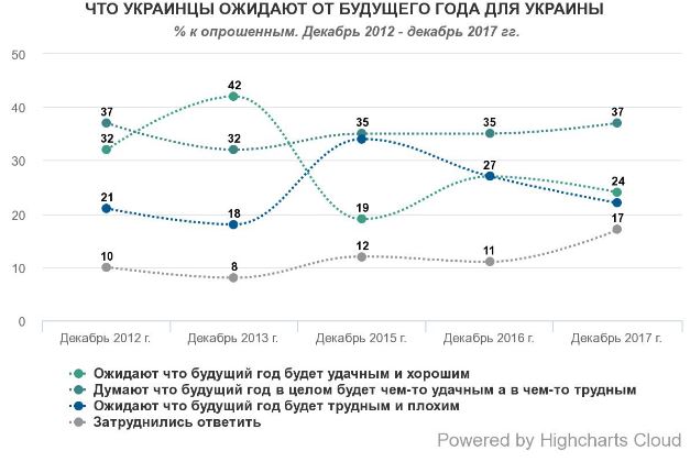 За результатами дослідження, 24% українців очікують, що 2018 рік для країни буде вдалим і гарним.