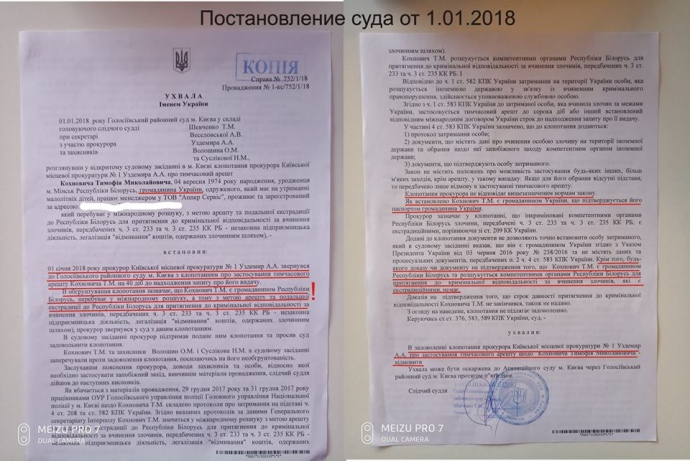 Відзначається, що 29 грудня 2017 року правоохоронні органи провели обшук в його будинку і затримали спочатку як громадянина України, а пізніше - як громадянина Білорусі, якого розшукують білоруські правоохоронці за звинуваченнями в незаконній підприємницькій діяльності.