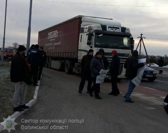 Зокрема, поблизу села Старовойтове Любомльського району Волинської області о 9:10 близько 70 осіб шляхом безперервного руху пішохідним переходом частково обмежили рух транспорту на міжнародній трасі Київ – Ковель – Ягодин.