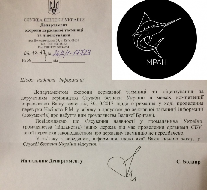 У березні 2017 року депутат БПП Мустафа Найєм оприлюднив довідку, яка свідчить про те, що у відстороненого голови Державної фіскальної служби Романа Насірова є громадянство Великої Британії.