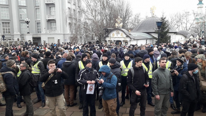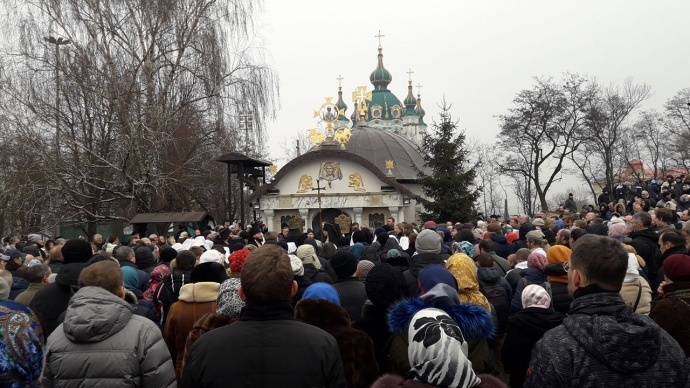 У самому храмі - "Десятинному монастирі Різдва пресвятої Богородиці" - раніше заявили, що 3 лютого "під виглядом мирної акції архітекторів розкольники і язичники за підтримки радикальних угруповань, підбурювані окремими народними депутатами" готують "силове захоплення" храму.