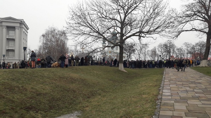 Як повідомляє кореспондент УП з місця події, загалом біля каплиці присутні понад 200 осіб.