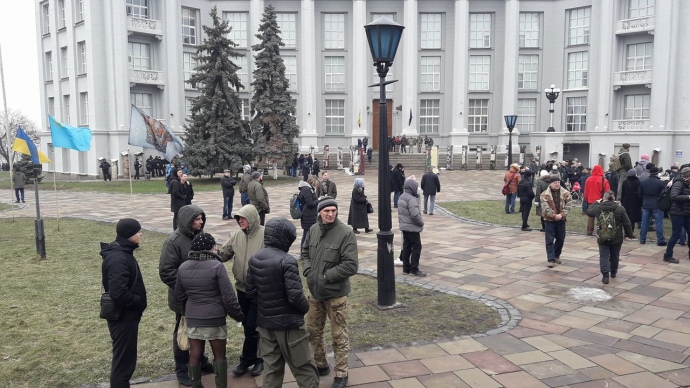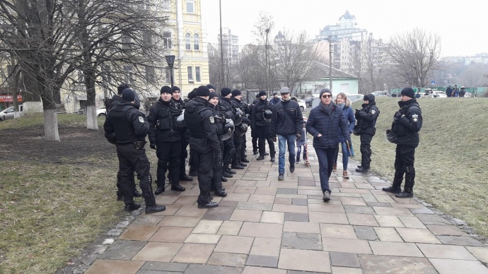 Між сторонами періодично виникає штовханина та словесні перепалки, їх розбороняють правоохоронці.