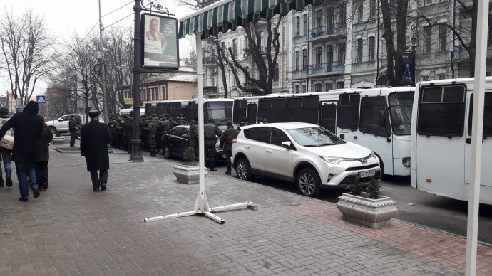 Для запобігання сутичкам біля каплиці територію патрулюють поліцейські, на прилеглих вулицях чергують 6 автобусів з Нацгвардією.