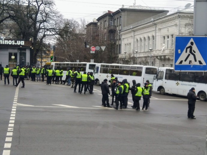 В'їзди до парку Шевченка закриті автобусами поліції. По периметру парку за порядком слідкують близько півтисячі правоохоронців.