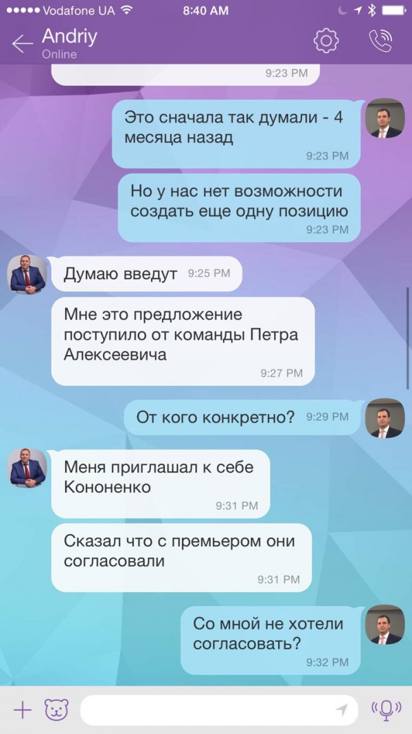 – Нардеп Сергій Лещенко опублікував скандальне листування міністра економіки Айвараса Абромавичуса і виконавчого директора "Нафтогазу" Андрія Пасішника, де останній заявив, що його на посаду в Кабміні просуває Ігор Кононенко.