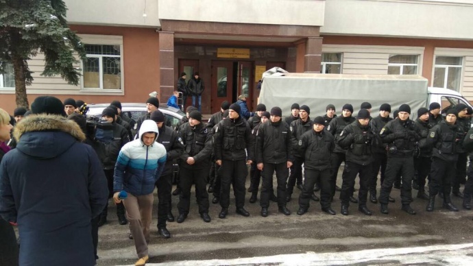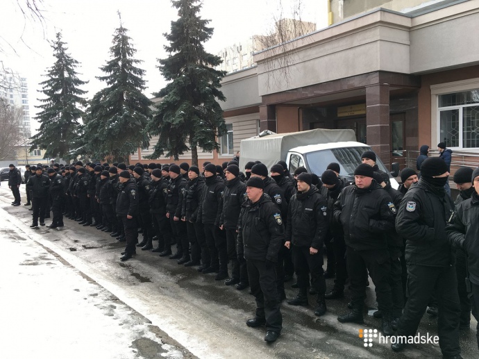15 лютого під Солом'янським судом у Києві, де обирали запобіжний захід меру Одеси Геннадію Труханову, відбулися сутички і затримання, кульове поранення отримав правоохоронець.