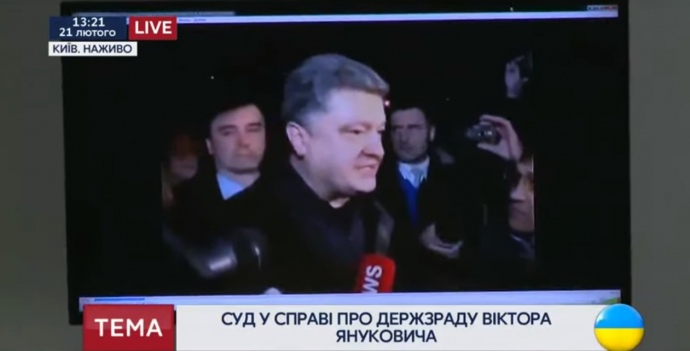 В Оболонському районному суді Києва, де слухається справа про державну зраду Віктора Януковича, переглянули відеозапис про приїзд тоді ще нардепа Петра Порошенка до Криму 28 лютого 2014 року.