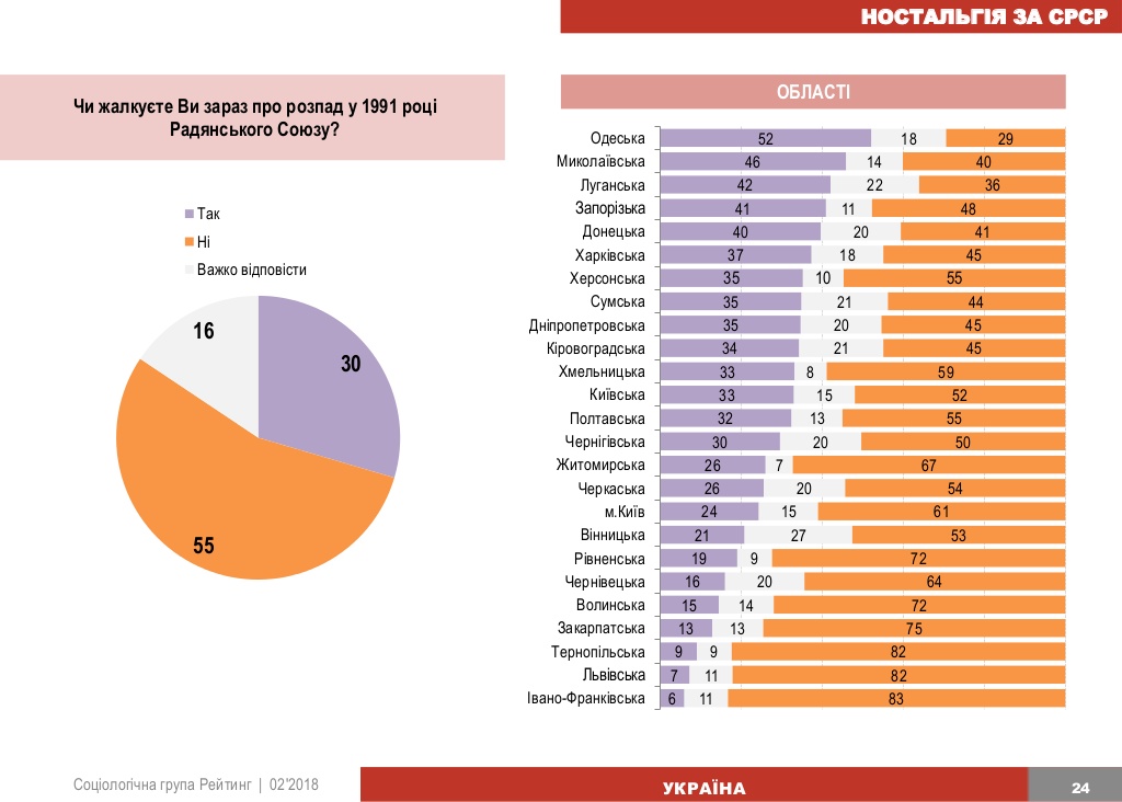 При цьому 55% респондентів не мають ностальгії за СРСР.