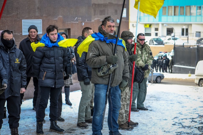 Активісти палили фаєри, кидали їх через паркан дипустанови, співали державний гімн та облили паркан консульства червоною фарбою.