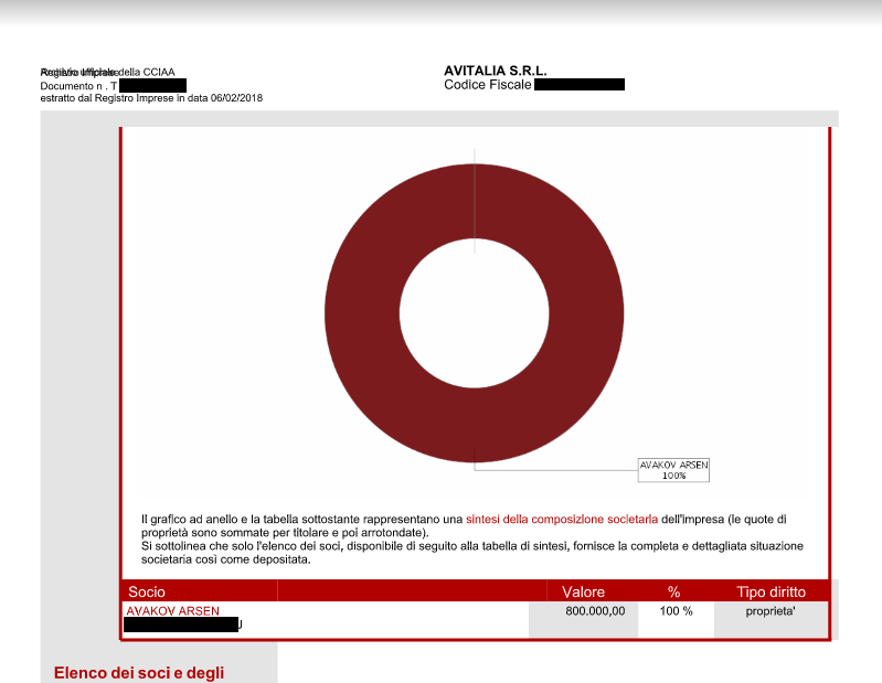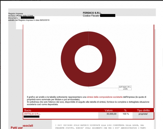 На той момент "Avitalia S.R.L" вже на 100% володіла фірмою "Ferdico S.R.L".
