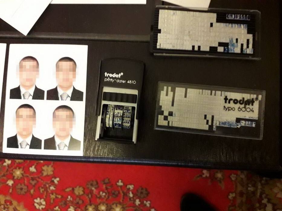 "Під час обшуків у лабораторії з виготовлення фальшивих документів оперативники спецслужби виявили "дата-штампи" про перетин кордонів ЄС, міграційні карти однієї з країн СНД, візи арабських держав", – інформує відомство.