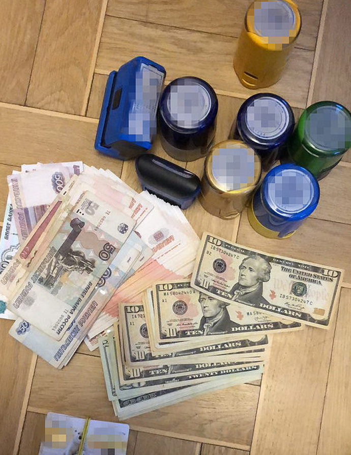 Під час обшуків в його офісах у Києві та Харкові правоохоронці вилучили гроші, чорнову бухгалтерію та печатки різних підприємств, задіяних в оборудці.
