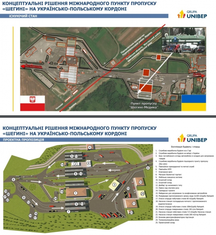 Повідомляється, що фірма "Unibep S.A." реконструює пункт пропуску "Шегині" за 15,55 мільйона євро.