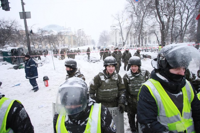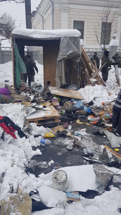 Як повідомляє кореспондент УП з місця події, наразі біля Верховної Ради спецпризначенці продовжують демонтаж наметового містечка, з наметів витягають особисті речі мітингувальників, усе складають у мішки.