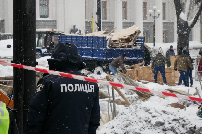 У поліції заявили, що на території табору проводяться слідчі дії за рішенням суду в рамках 2 кримінальних проваджень - одне з них відкрито за фактом спроби захоплення Міжнародного центру культури і мистецтв (Жовтневого палацу), інше – по подіях 27 лютого біля ВР.