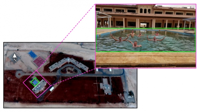 У статті також є фотографія Мільчакова і інших бійців в басейні. За даними "Фонтанки", Мільчаков і його підлеглі були сфотографовані на базі "Вагнера" на заводі "Хайян". За допомогою геолокації вдалося підтвердити, що цей басейн дійсно знаходиться на заводі "Хайян".